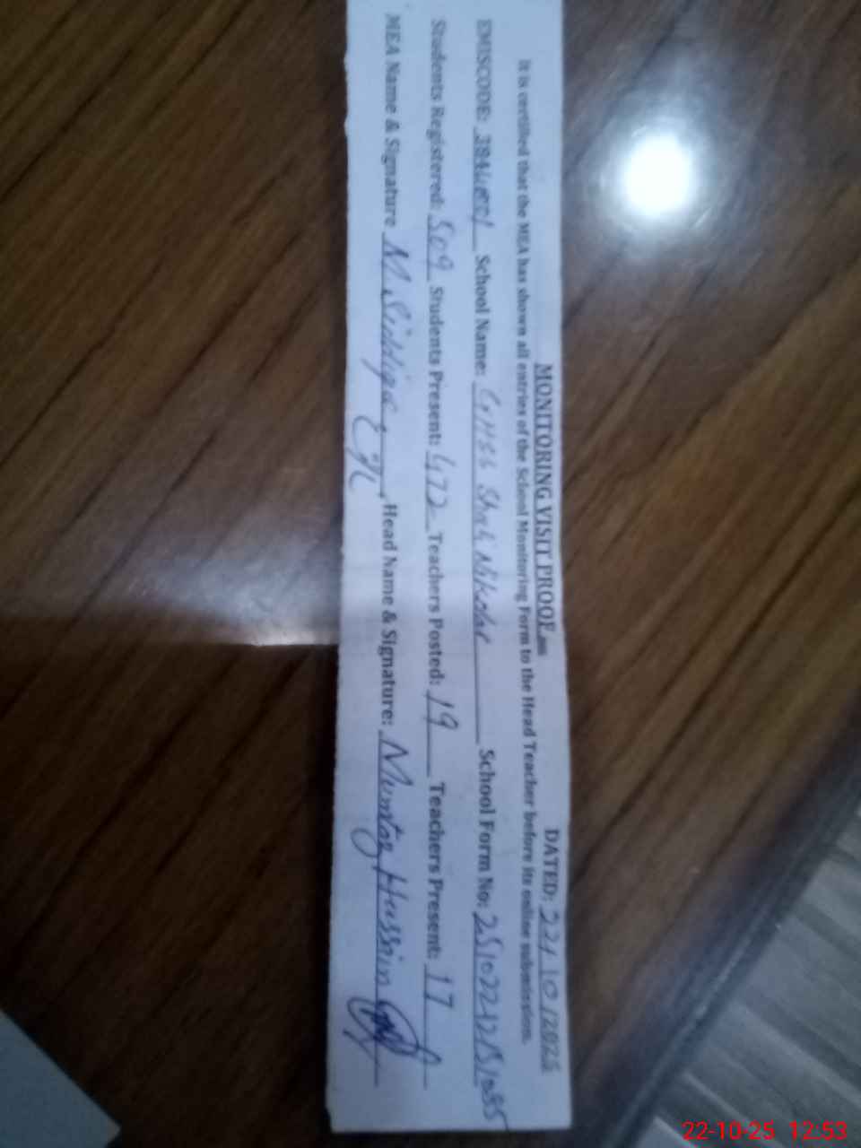| Certified that this School was Inspected by the Undersigned MEA/DMO Today and the Information Stated Above is as Per Record. | |||||