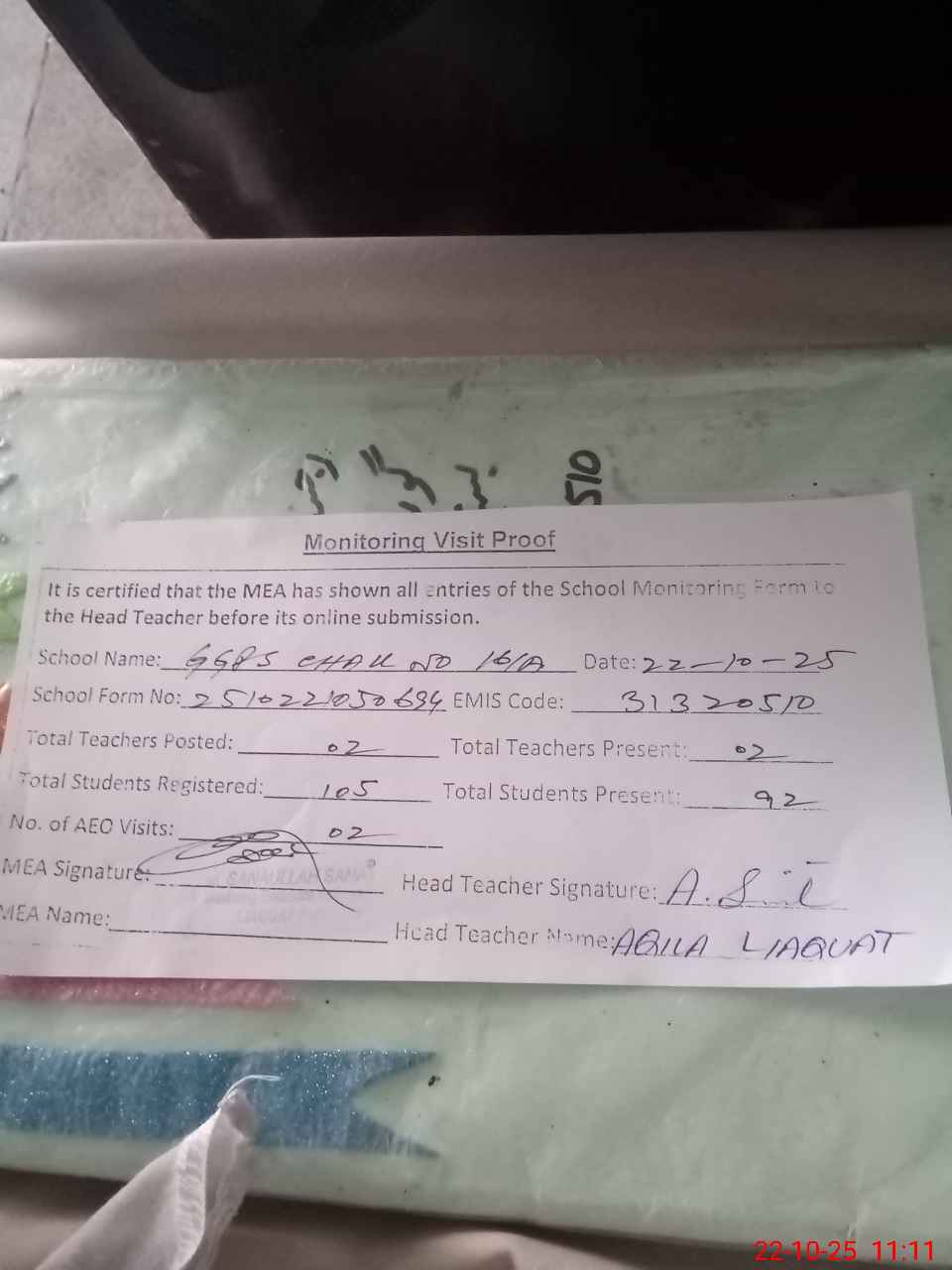 | EMIS Code: 31320510 | Name of School: GGPS CHAK NO.16/A BASTI WALI MUHAMMAD | |||