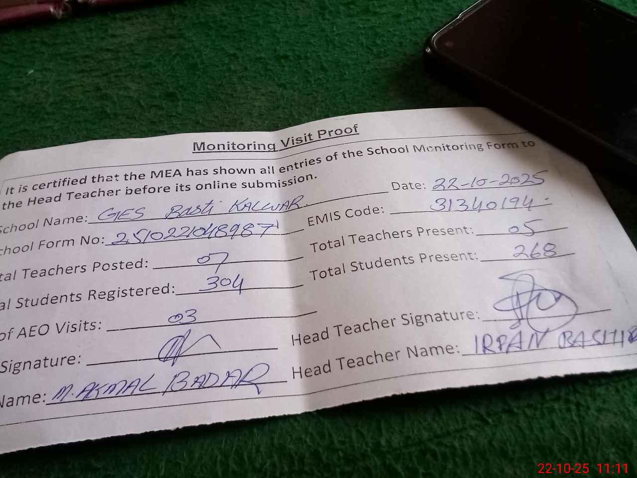 | EMIS Code: 31340194 | Name of School: GES BASTIKALWAR BASTI KALWAR | |||