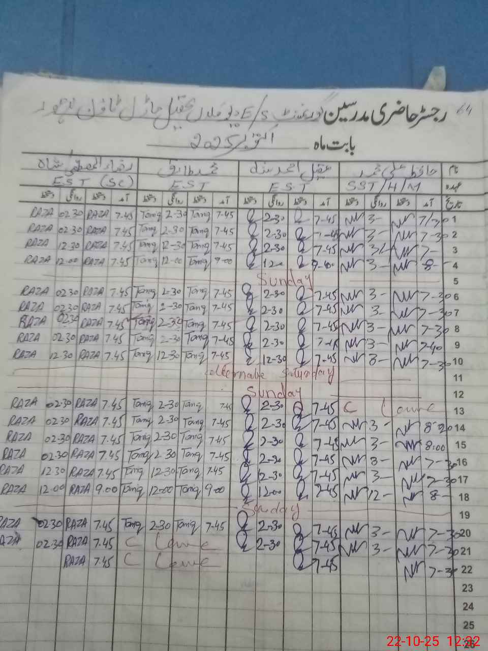 | 32**** | Ha**** Al**** Mu**** | Regular | 0 | 0 | 0 | 0 | 0 | 0 | 0 | 0 | 0 | Absent (Un-Authorized) | |