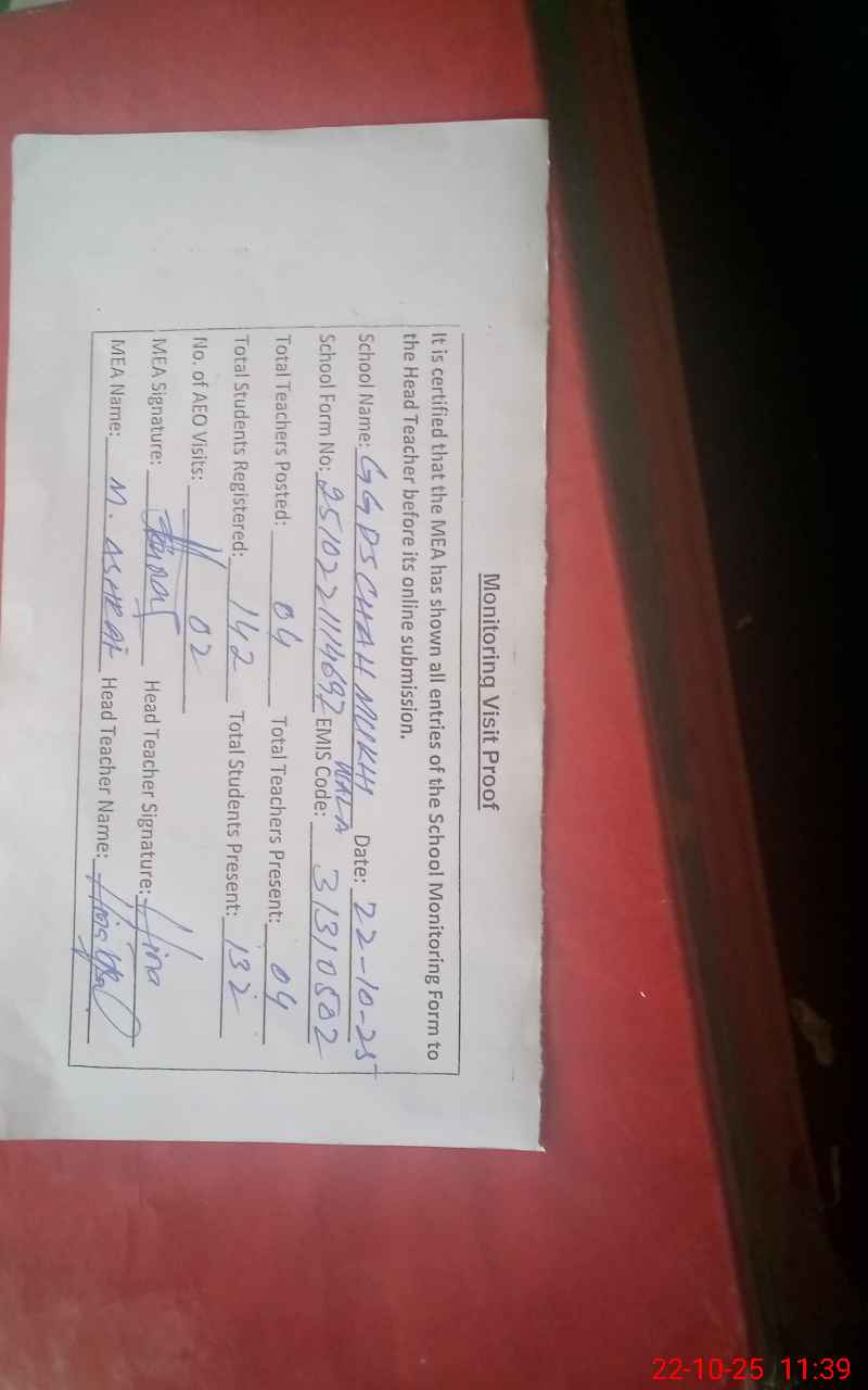 | EMIS Code: 31310502 | Name of School: GGPS CHAHMUKHI WALA | |||