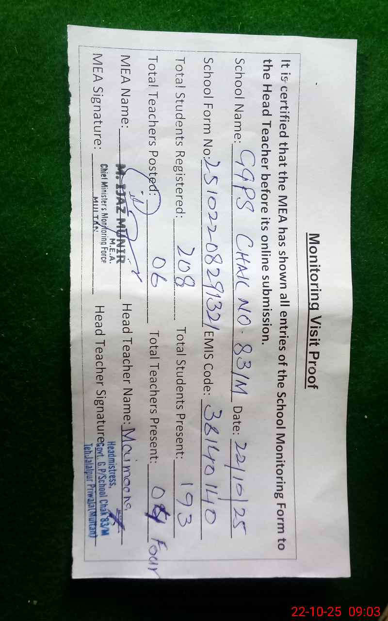| EMIS Code: 36140140 | Name of School: GGPS CHAK NO. 83/M | |||