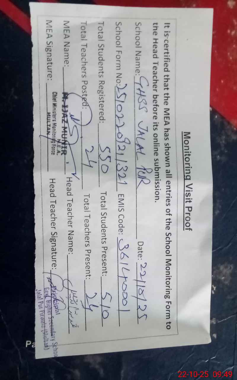 | EMIS Code: 36140001 | Name of School: GHSS JALALPUR PIRWALA | |||