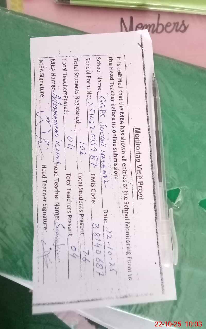 | EMIS Code: 38140687 | Name of School: GGPS SULTAN WALA NO. 2 | |||