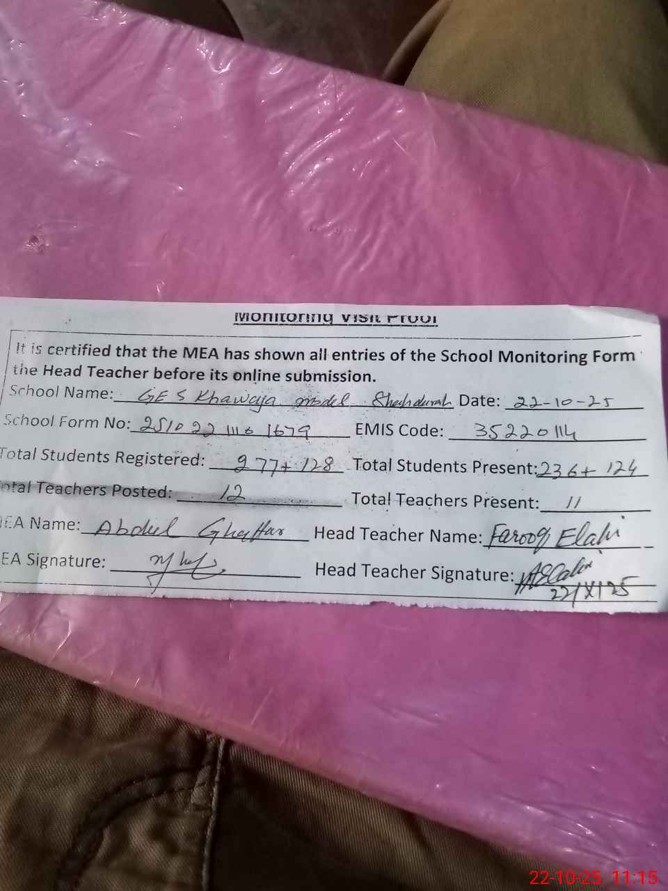 | EMIS Code: 35220114 | Name of School: GES KHAWAJA MODEL SHAHDARA | |||