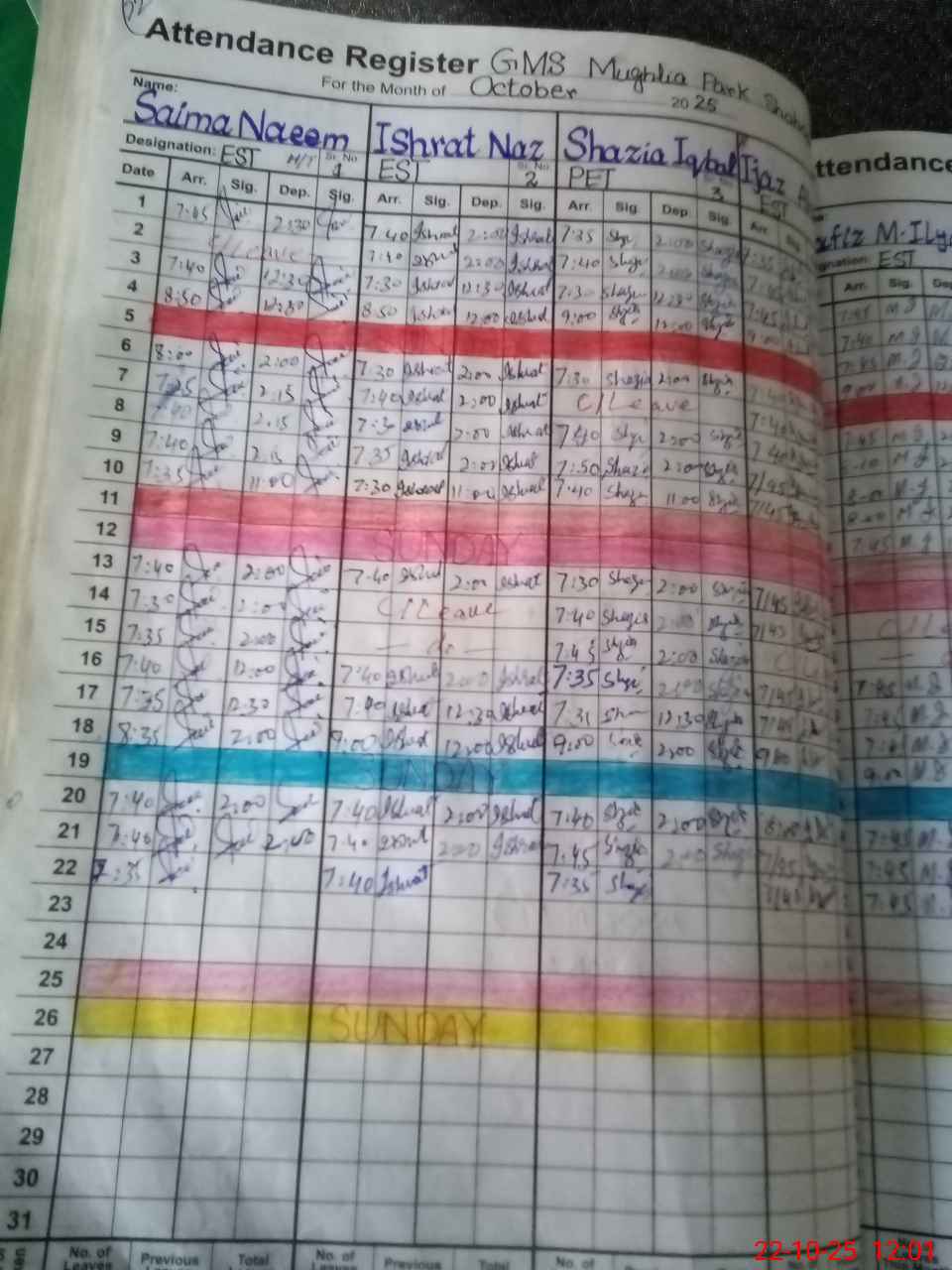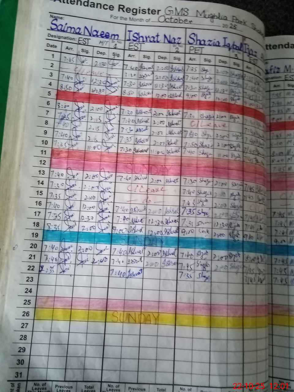 | Remarks (Use Separate Page if Required): Pst Shamim ara retired Agugst 2024 but her name not removed from system 35220117 | |||||