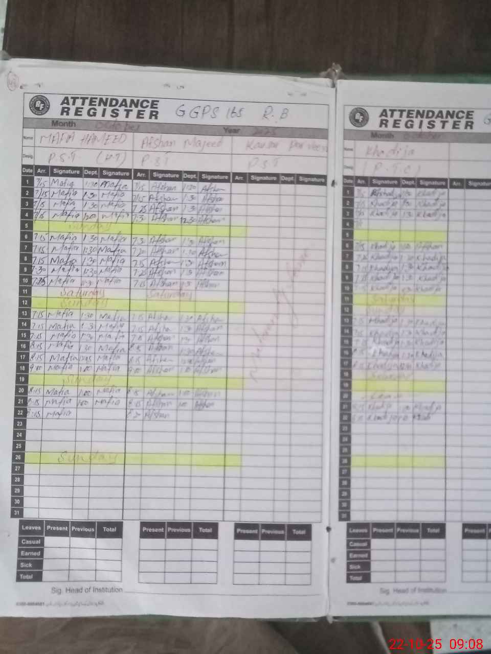 | CNIC | Full Name | Designation | R/C | Absence During Last Calender Month |