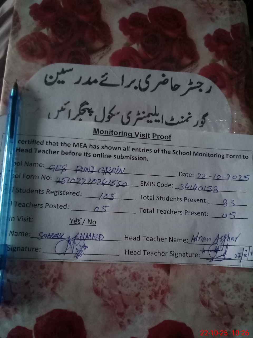 | EMIS Code: 34140158 | Name of School: GES PUNJ GRAIN | |||