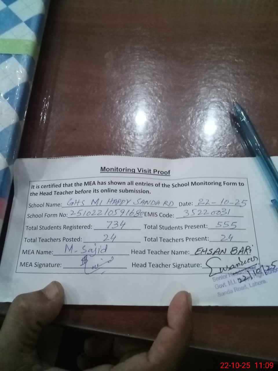 | EMIS Code: 35220031 | Name of School: GHS M.I. HAPPY SANDA ROAD NATIONAL TOWN LAHORE | |||