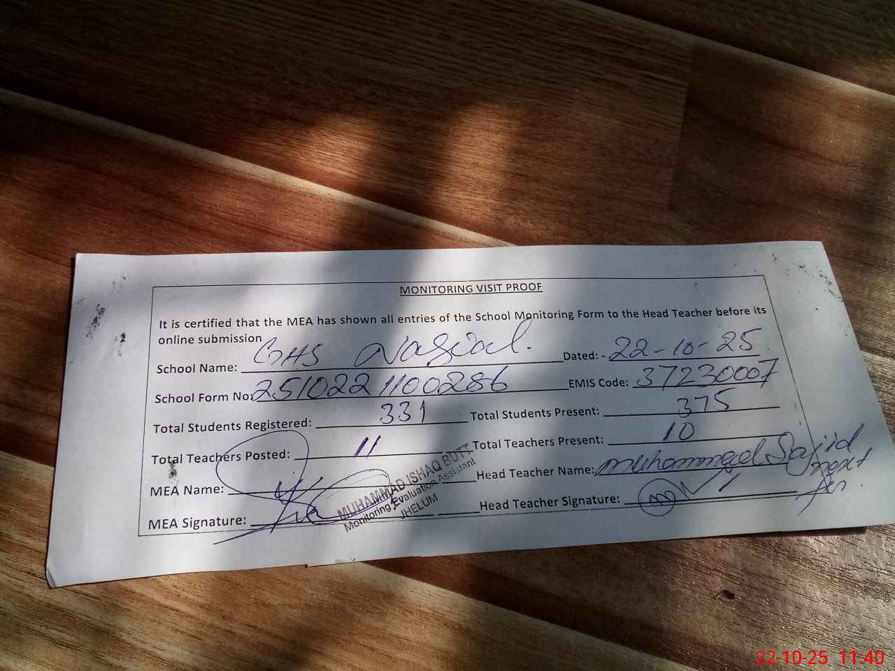 | EMIS Code: 37230007 | Name of School: GHS NAGIAL | |||