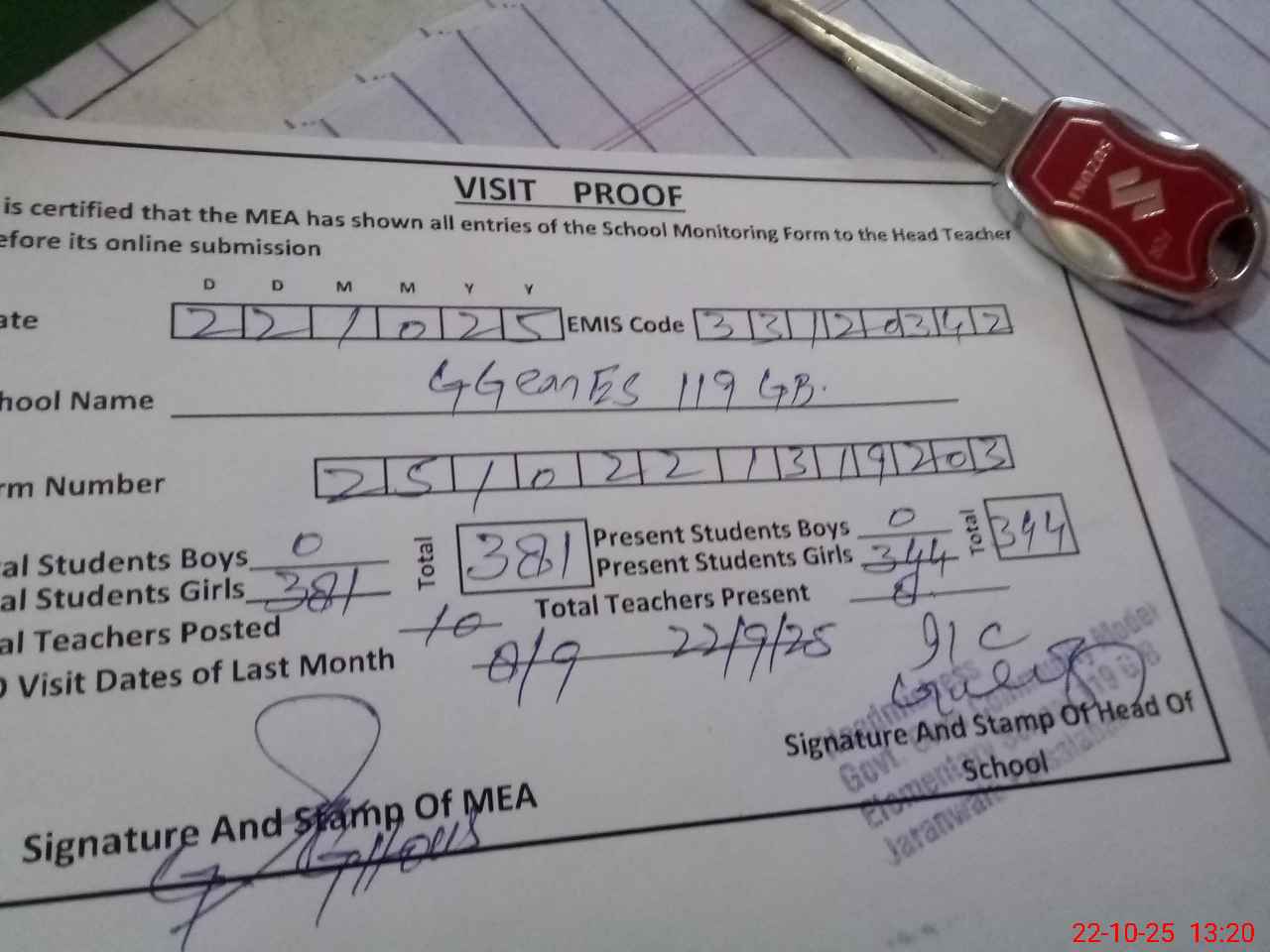 | EMIS Code: 33120342 | Name of School: GGCMES CHAK 119 GB JARANWALA | |||