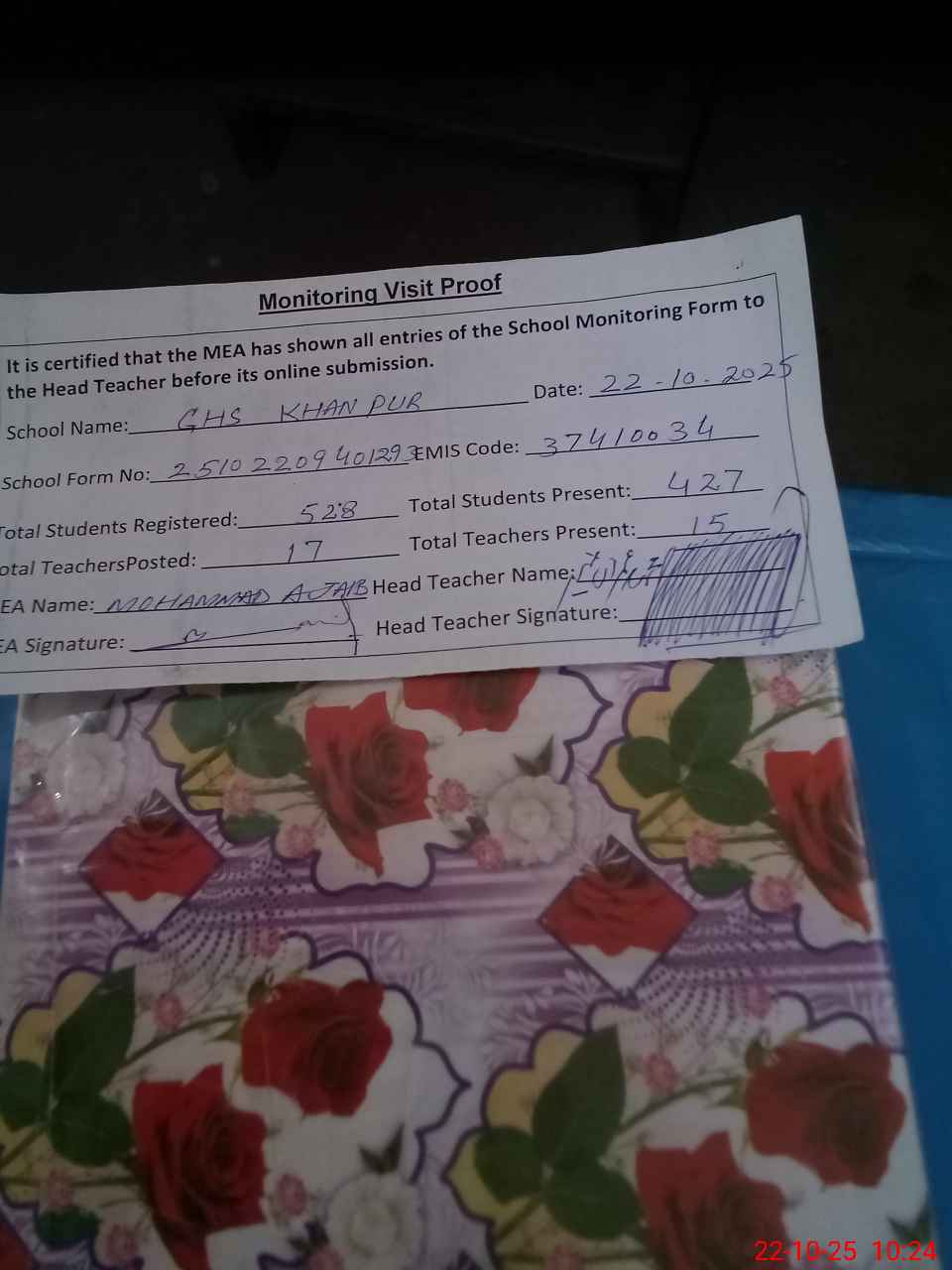 | EMIS Code: 37410034 | Name of School: GHS KHANPUR CHAKWAL | |||