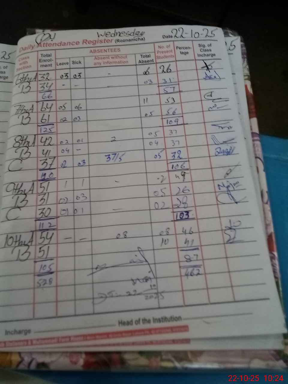 | Total no. of Classrooms: 20 No. of Classrooms Used for Teaching: 15 No. of Classrooms Storing Old Furniture, FTBs, etc: 0Comments if Any: 0 |