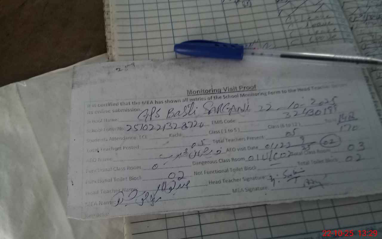| Certified that this School was Inspected by the Undersigned MEA/DMO Today and the Information Stated Above is as Per Record. | |||||