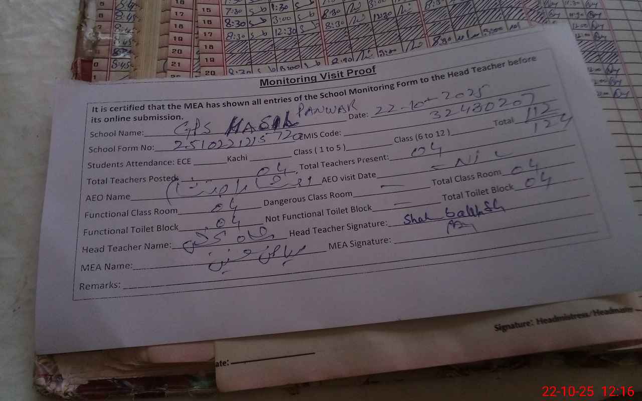 | Attendance Register | Head Teacher | MEA with School | Visit Proof |