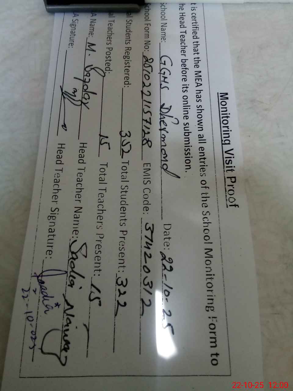 | EMIS Code: 37420312 | Name of School: GGHS DHERMOND | |||