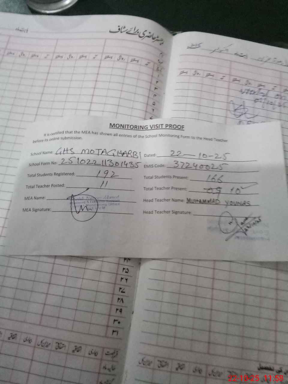 | EMIS Code: 37240025 | Name of School: GHS MOTA GHARBI | |||