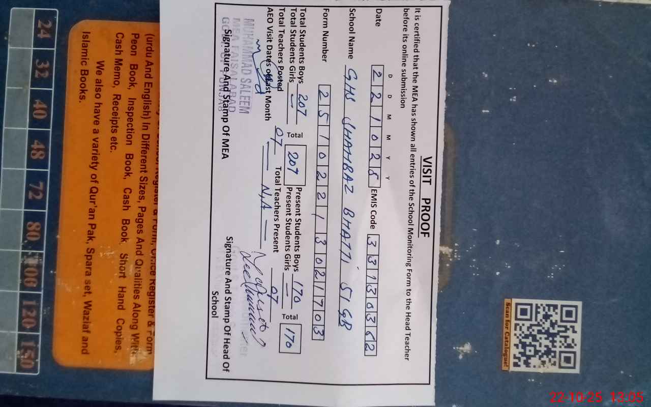 | EMIS Code: 33130362 | Name of School: GHS SHAHBAZ BHATTI CHAK 51 GB KHUSHPUR SAMUNDRI | |||
