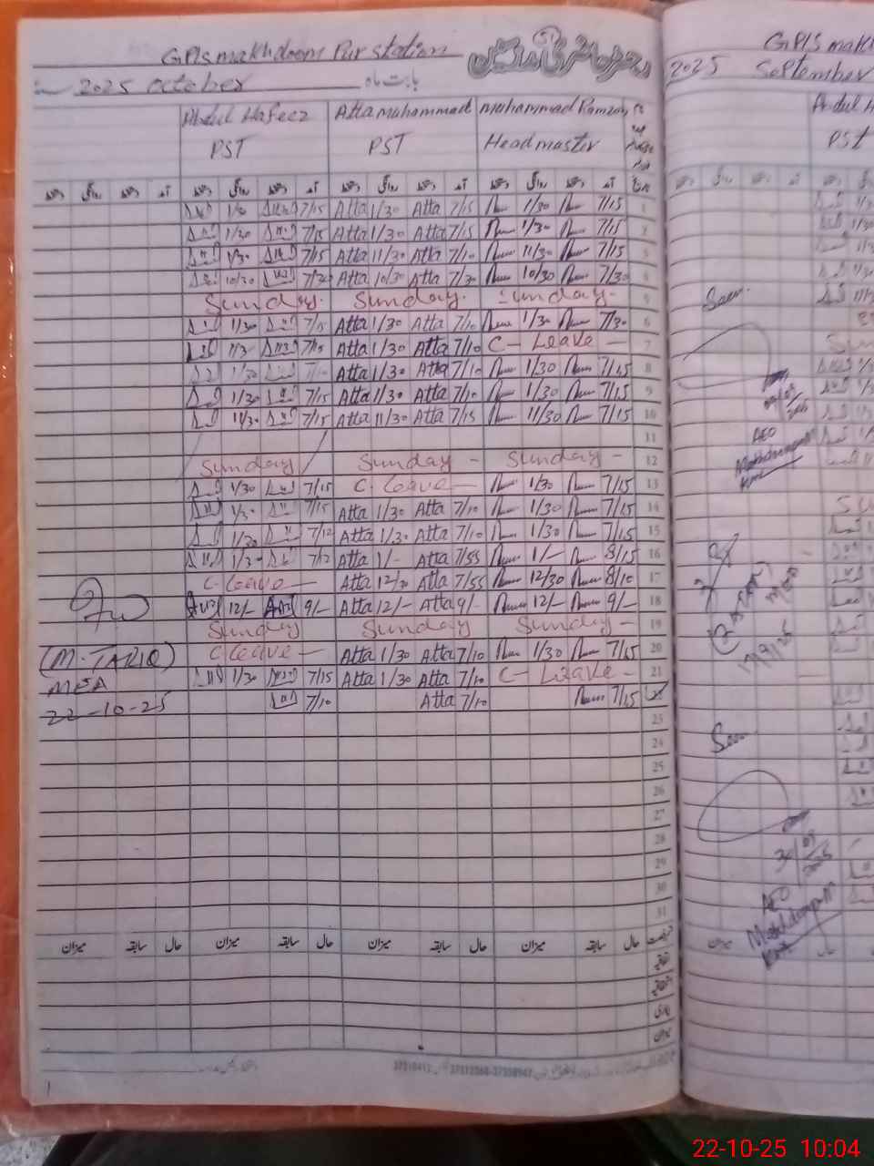 | Name: M.**** Designation: (School Headmaster's/Headmistress's) PST Phone/Cell Number: 03**** |