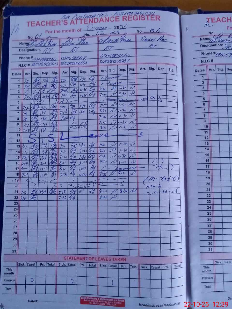 | Name: HA**** MU**** AN**** AS**** Designation: (School Headmaster's/Headmistress's) PST Phone/Cell Number: 03**** |
