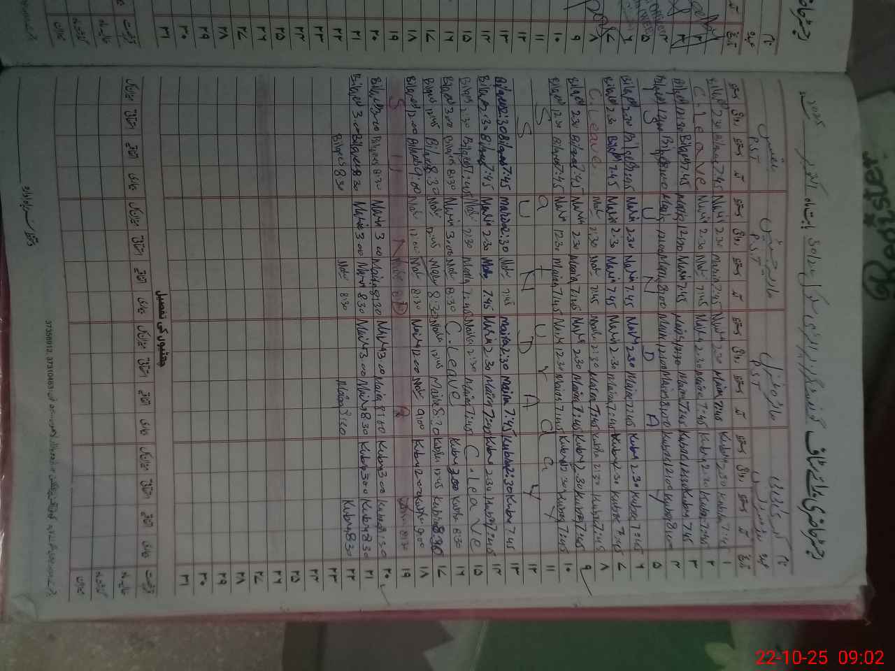 | CNIC | Full Name | Designation | R/C | Absence During Last Calender Month |