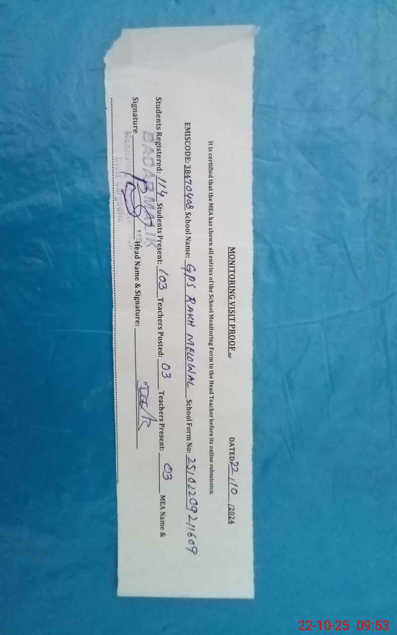 | EMIS Code: 38470408 | Name of School: GPS RAKH MELO WAL | |||