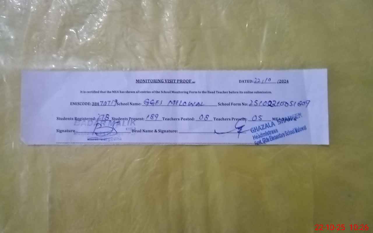| EMIS Code: 38470719 | Name of School: GGES MELOWAL | |||