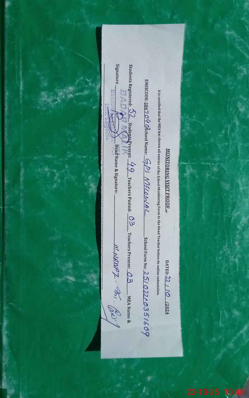 | Certified that this School was Inspected by the Undersigned MEA/DMO Today and the Information Stated Above is as Per Record. | |||||