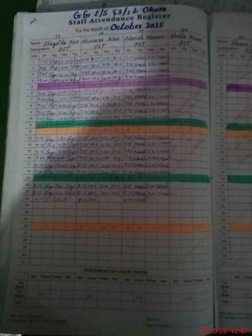 | 35**** | Sh**** Ko**** | PST | Regular | 0 | 0 | 0 | 0 | 0 | 0 | 0 | 0 | 0 | Maternity |