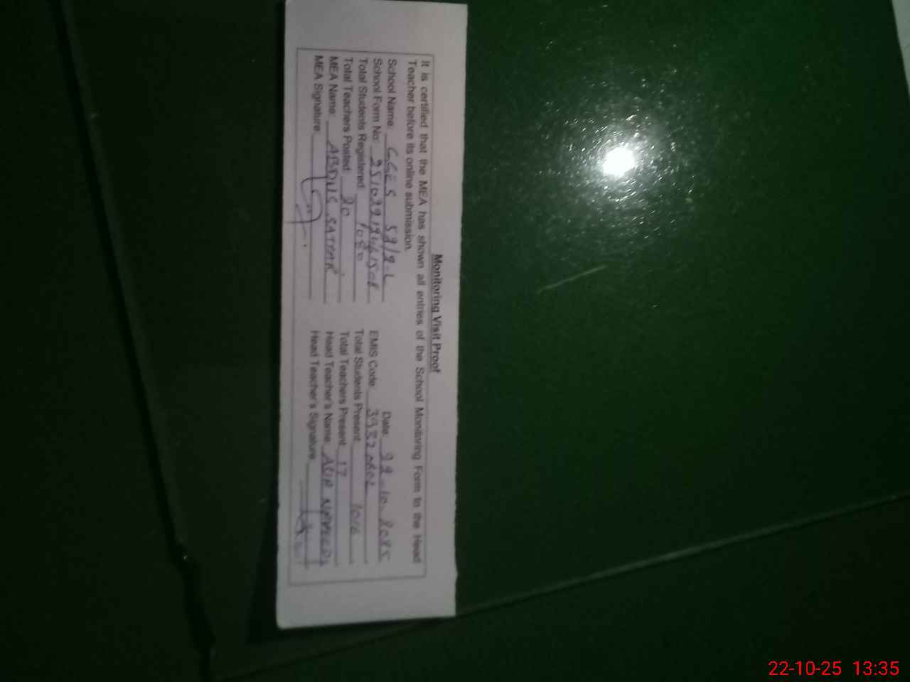| Attendance Register | Head Teacher | MEA with School | Visit Proof |
