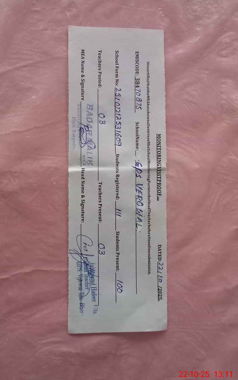 | EMIS Code: 38470875 | Name of School: GPS VEROWAL | |||
