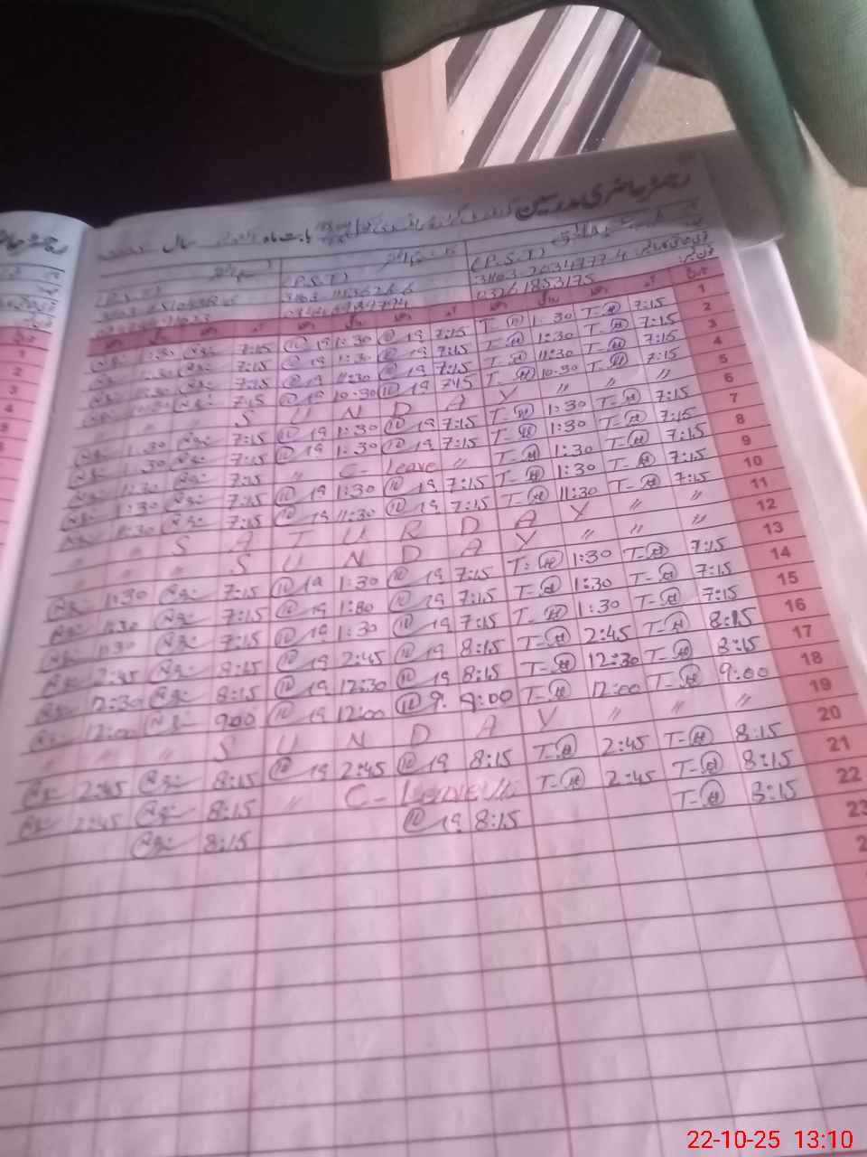 | CNIC | Full Name | Designation | R/C | Absence during last cal. month |