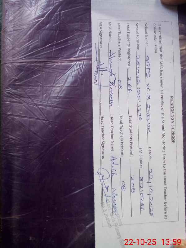 | EMIS Code: 37210256 | Name of School: GGPS NO. 3 JEHLUM | |||