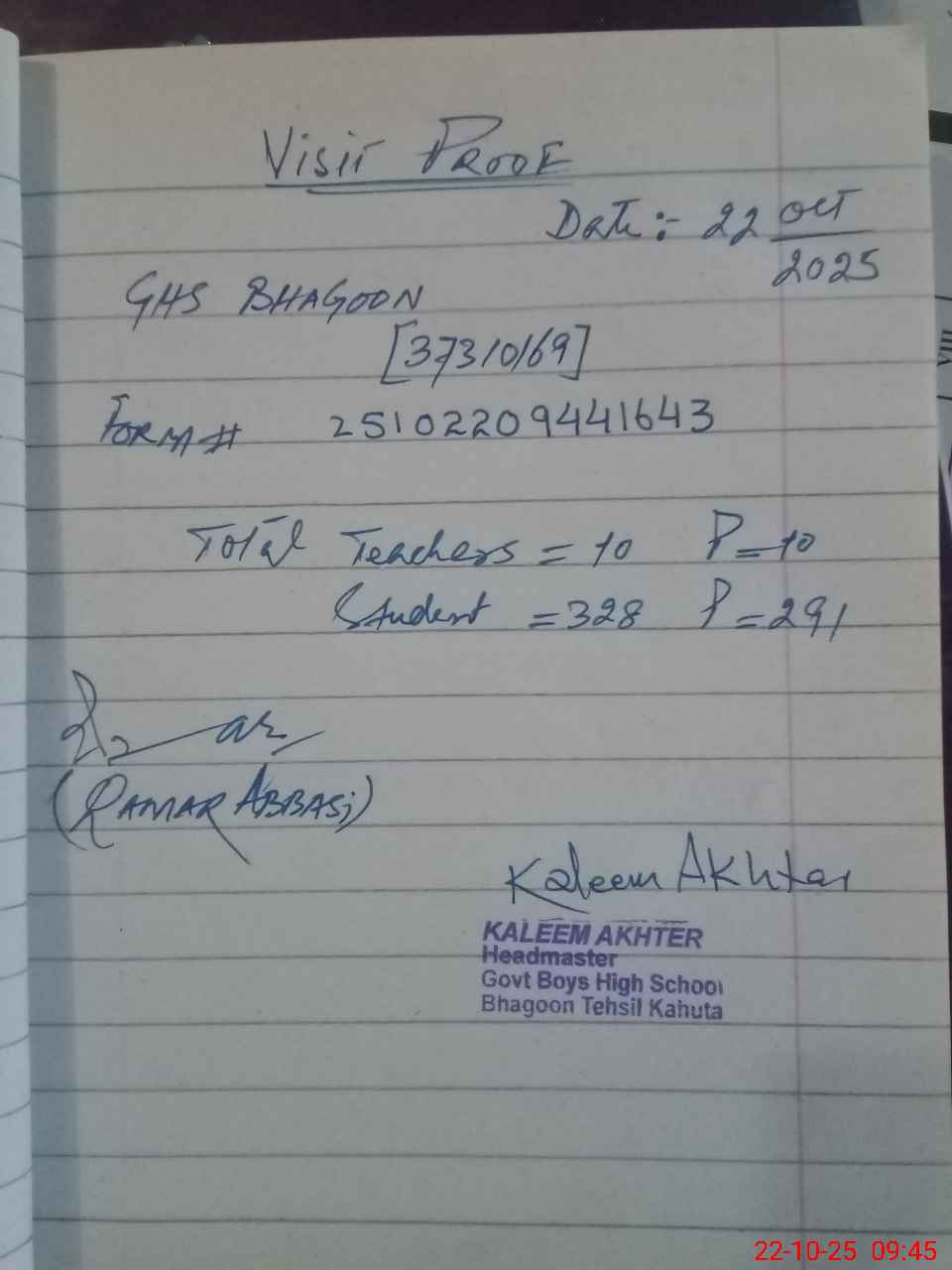 | Name: Ka**** Ak**** Designation: (School Headmaster's/Headmistress's) EST Phone/Cell Number: 03**** |