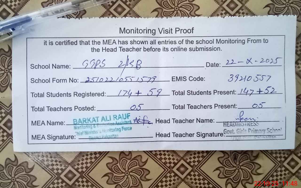 | Attendance Register | Head Teacher | MEA with School | Visit Proof |