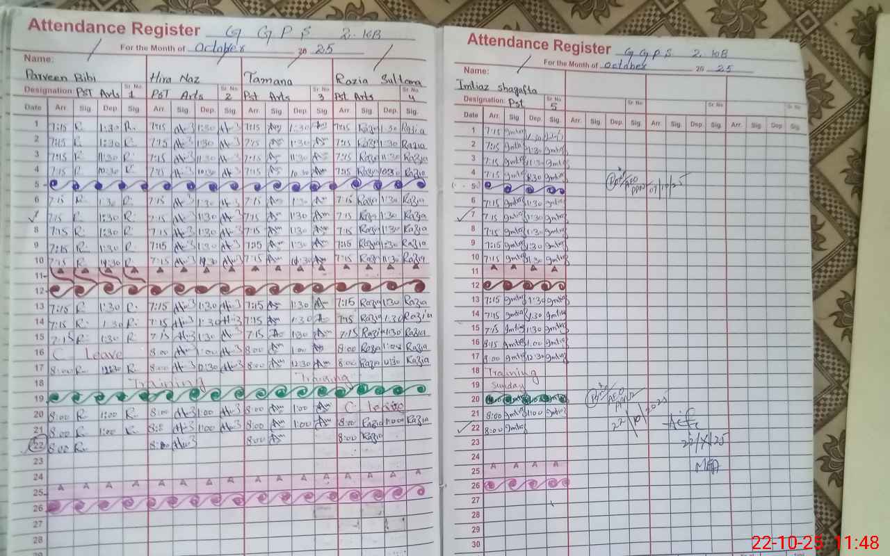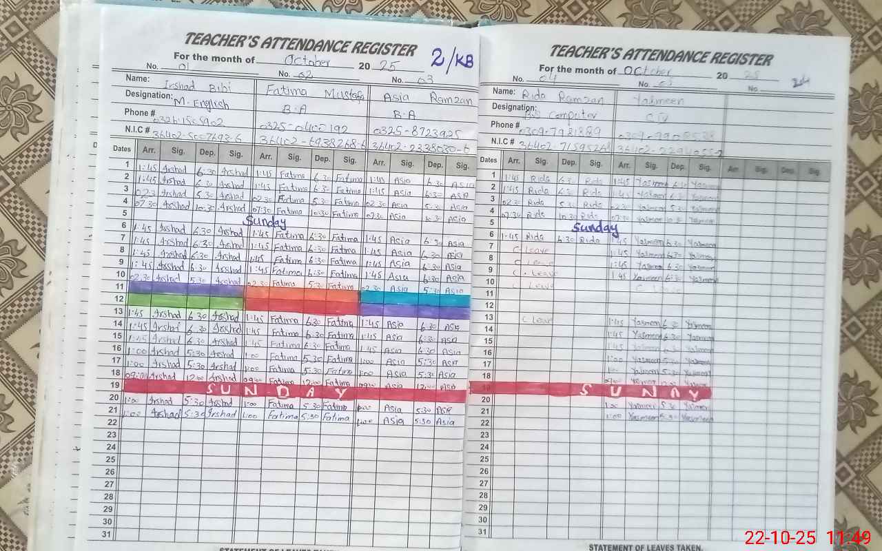 | CNIC | Full Name | Designation | R/C | Absence During Last Calender Month |
