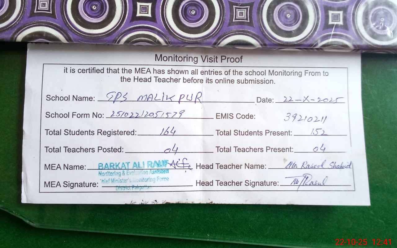 | EMIS Code: 39210211 | Name of School: GPS MALIK PUR PO PAKPATTAN | |||