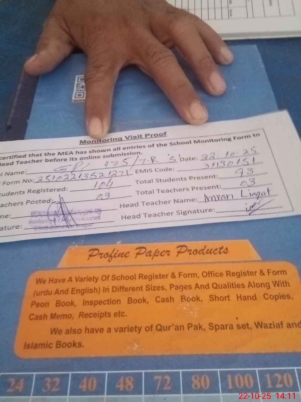 | Attendance Register | Head Teacher | MEA with School | Visit Proof |