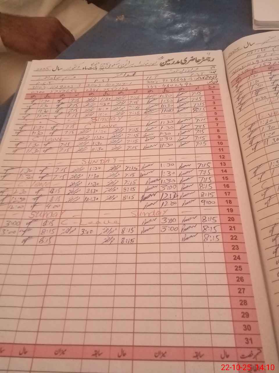 | CNIC | Full Name | Designation | R/C | Absence During Last Calender Month |