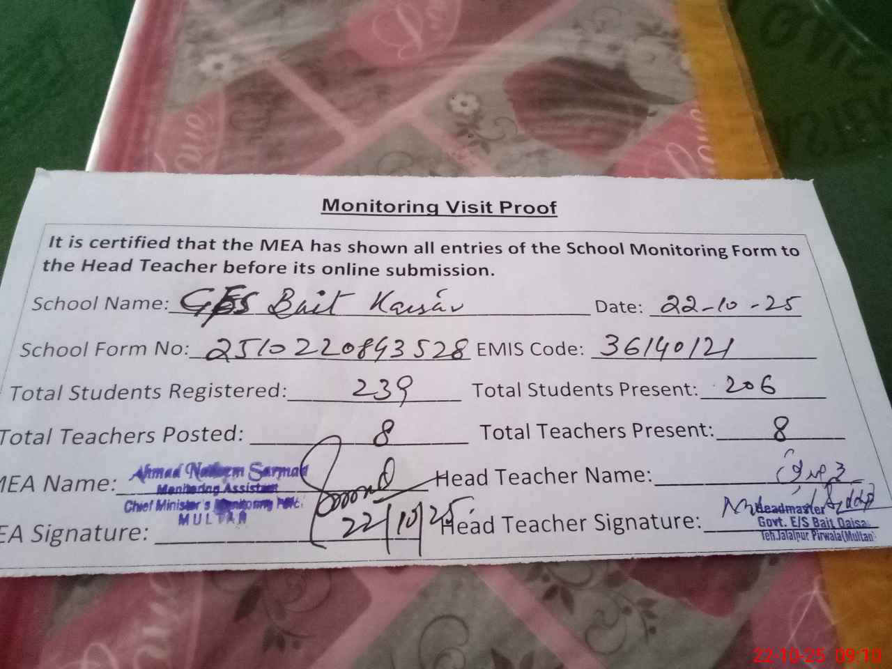 | EMIS Code: 36140121 | Name of School: GES BAIT KAISAR JALALPUR PIRWALA | |||