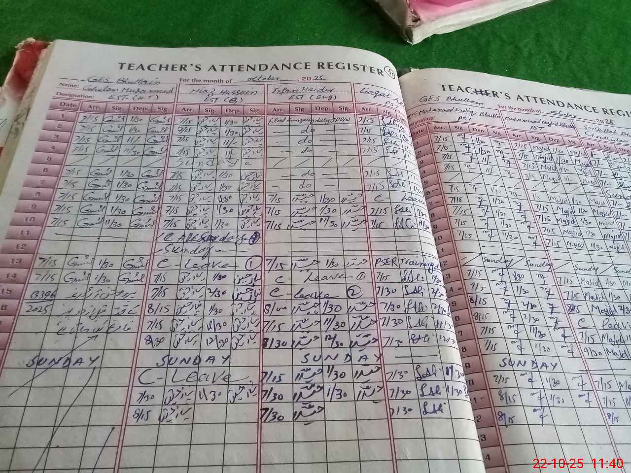 | Leave | Duty | Absent | Maternity | Medical | Ex- Pak |