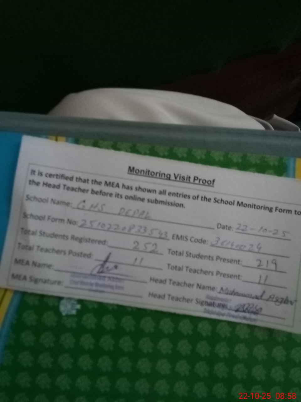 | Certified that this School was Inspected by the Undersigned MEA/DMO Today and the Information Stated Above is as Per Record. | |||||