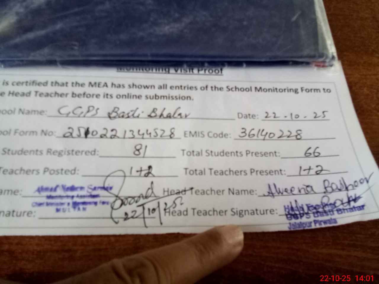 | EMIS Code: 36140228 | Name of School: GGPS BASTI BHALAR TEH. JALALPUR PIRWALA | |||