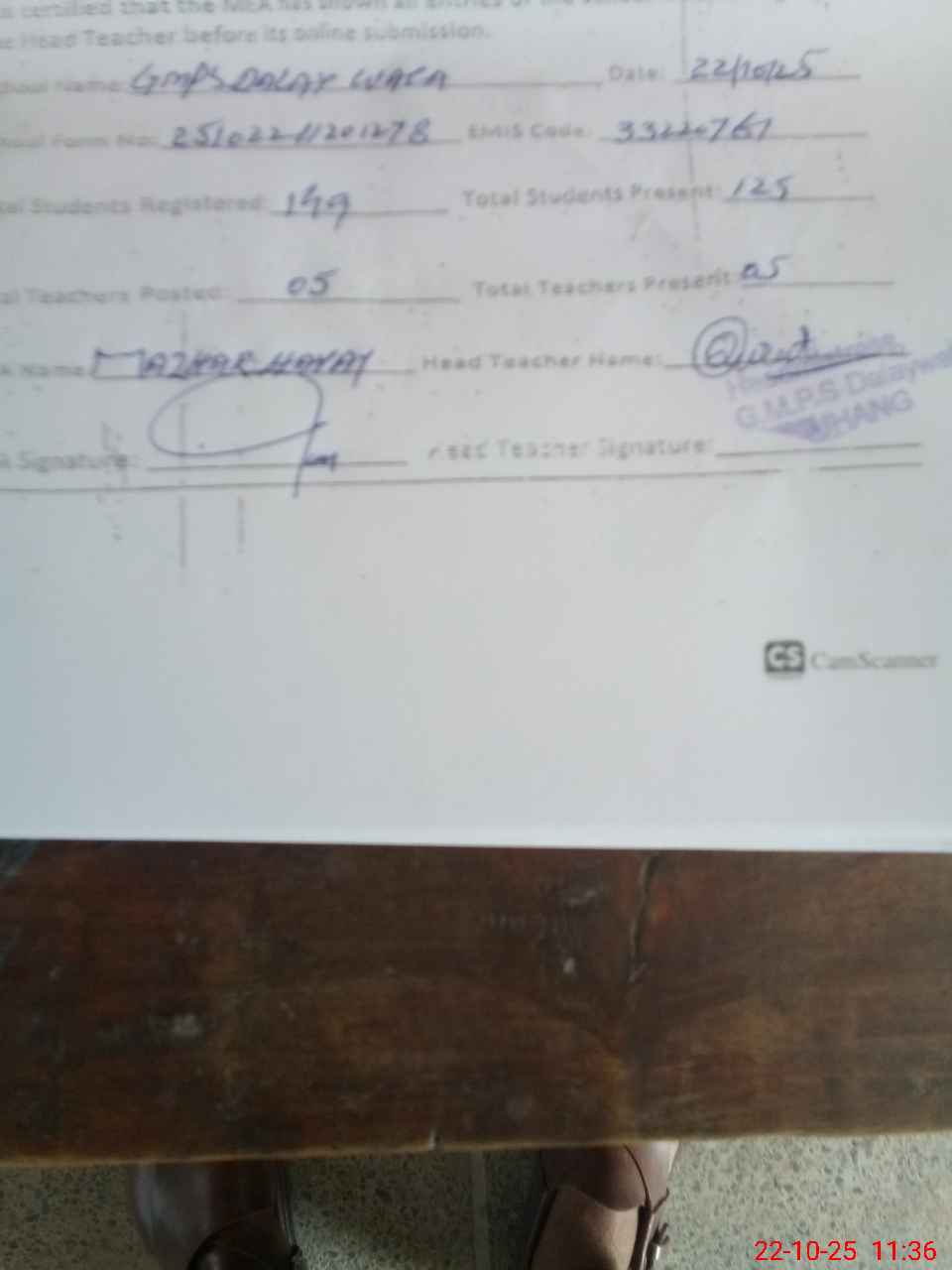 | EMIS Code: 33220761 | Name of School: GMPS DALAY WALA | |||