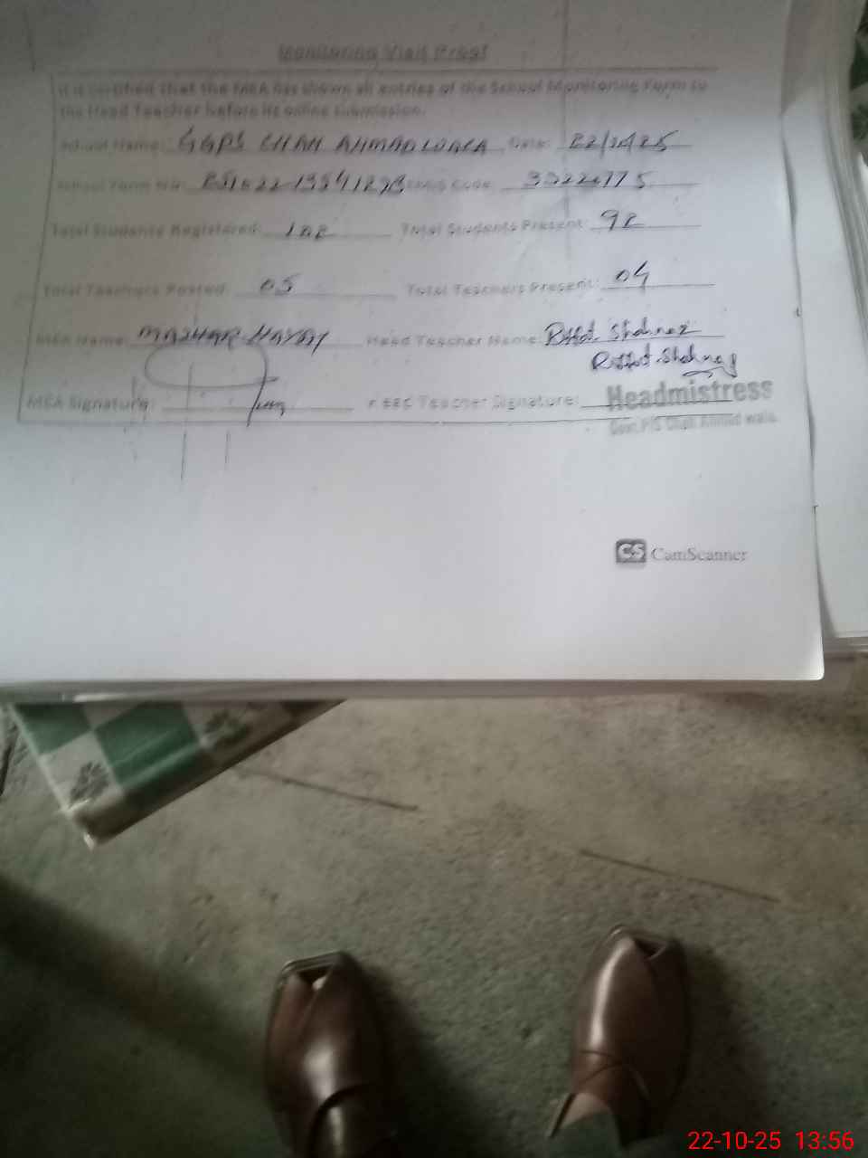 | Attendance Register | Head Teacher | MEA with School | Visit Proof |