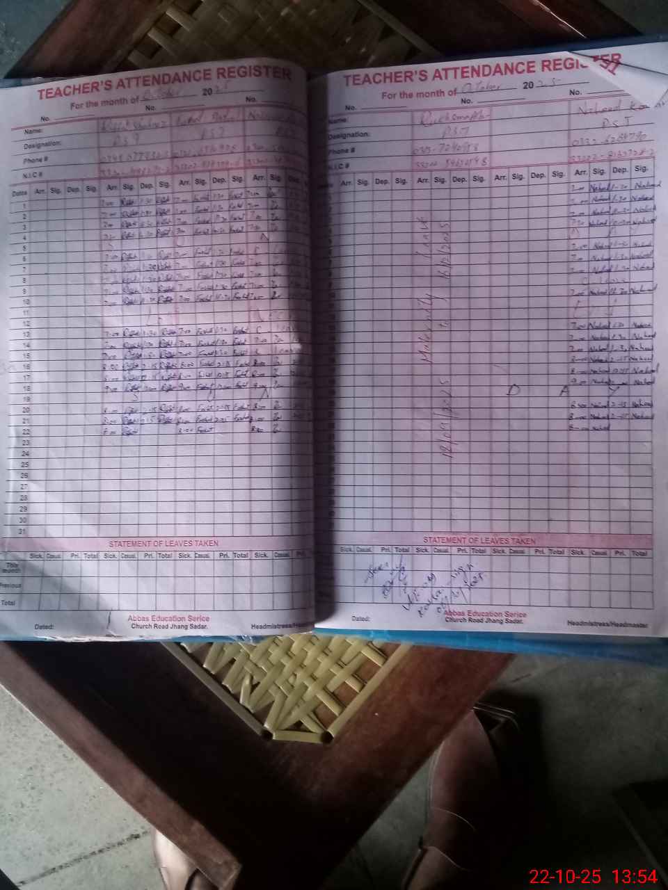 | Name: RI**** SH**** Designation: (School Headmaster's/Headmistress's) PST/PTC/JV Phone/Cell Number: 03**** |