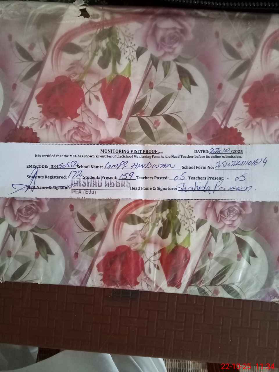 | Certified that this School was Inspected by the Undersigned MEA/DMO Today and the Information Stated Above is as Per Record. | |||||