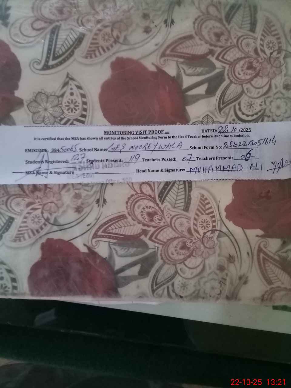 | EMIS Code: 38450065 | Name of School: GES NOOREY WALA | |||