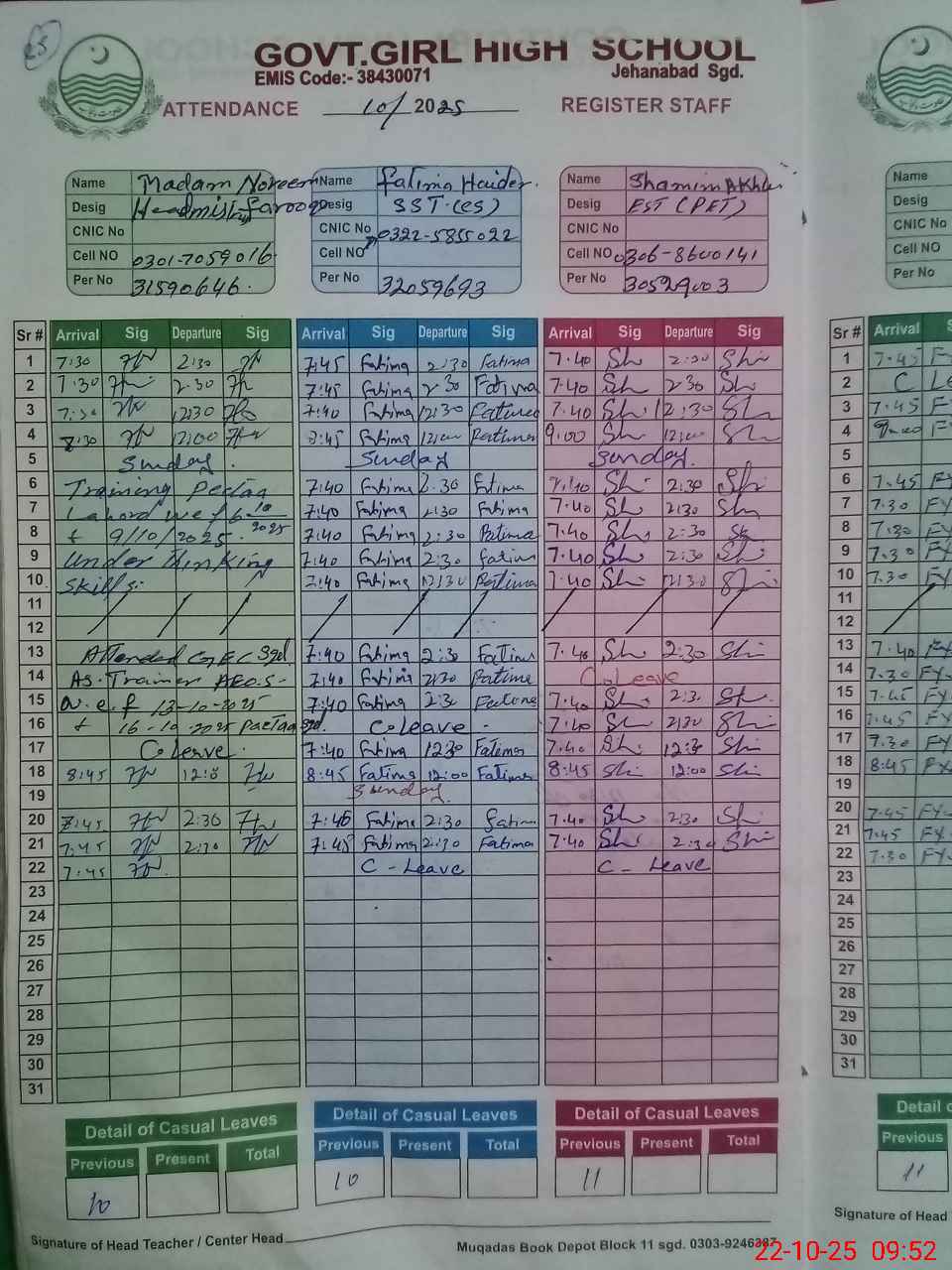 | Name: NO**** FA**** Designation: (School Headmaster's/Headmistress's) SST (SCI) Phone/Cell Number: 03**** |
