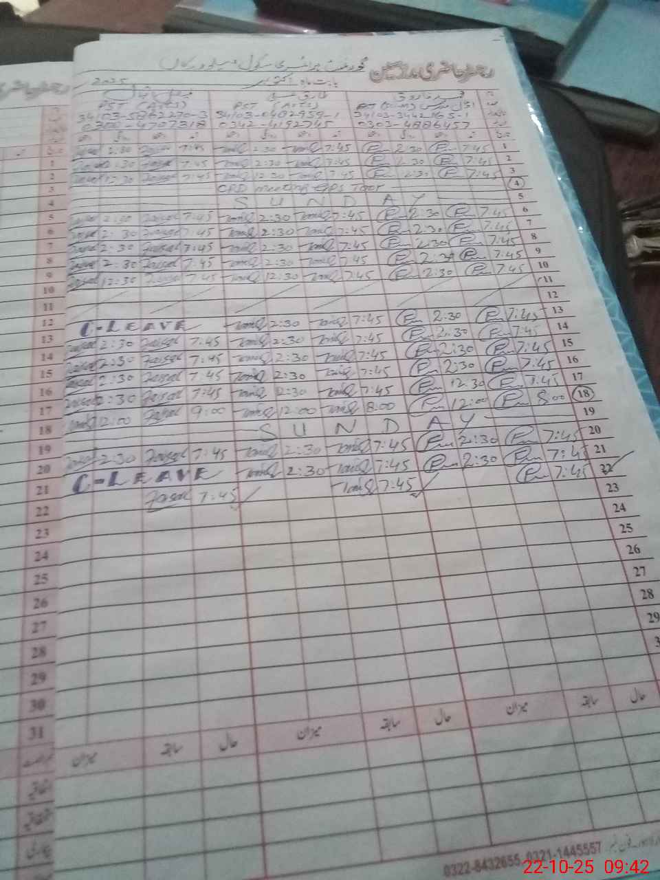 | CNIC | Full Name | Designation | R/C | Absence During Last Calender Month |